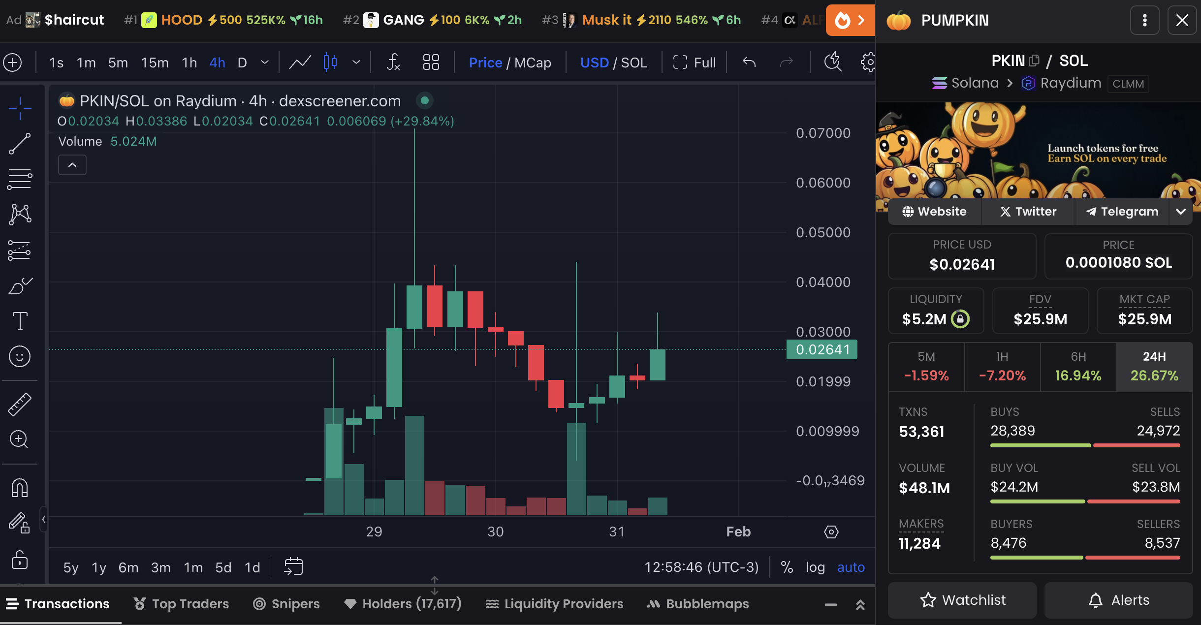 Mabilis na nakakuha ng traction ang platform, na umabot sa halos 17,500 holders na may market cap na $26.7 million. Sa mahigit 53,000 daily transactions, malakas na ang engagement sa Pumpkin Fun, na nagpapahiwatig ng lumalaking interes sa ecosystem nito.
