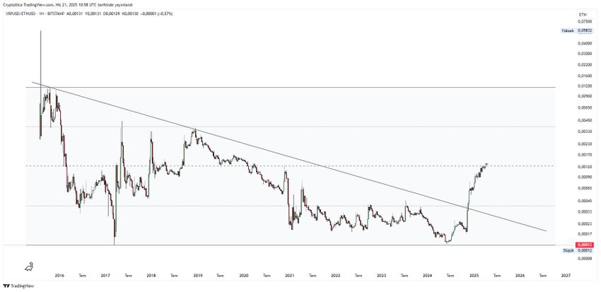 Ang paggalaw ng capital na ito ay nag-trigger din ng isang mahalagang technical outcome. Ang XRP/ETH chart ay nabasag ang downtrend line na nag-hold mula pa noong 2016, na nagsi-signal ng long-term bullish trend para sa pair.