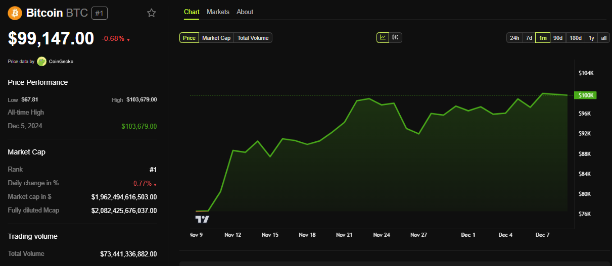 Sa ngayon, ang presyo ng Bitcoin ay nasa $99,000 range pa rin buong weekend, malapit na sa $100,000.