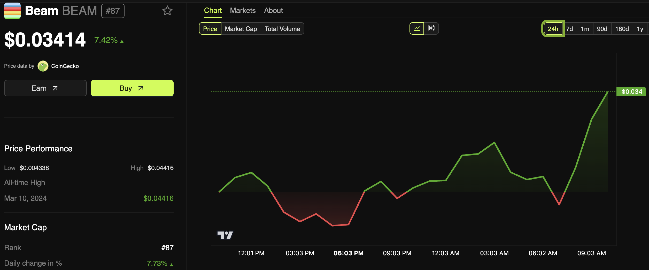 Basically, plano ng grupo na pagsamahin ang economics ng AI compute sa crypto-native ethos. Gumagawa ito ng bagong framework para sa pag-distribute ng GPU resources sa pamamagitan ng tokenization. Ang Aethir ang magpo-provide ng hardware resources, at ang MetaStreet ay nagde-develop ng DeFi primitives para ma-unlock ang liquidity na ito. Ang pangunahing kontribusyon ng Beam ay mukhang financial, pero tumaas ang token nito pagkatapos ng announcement.
