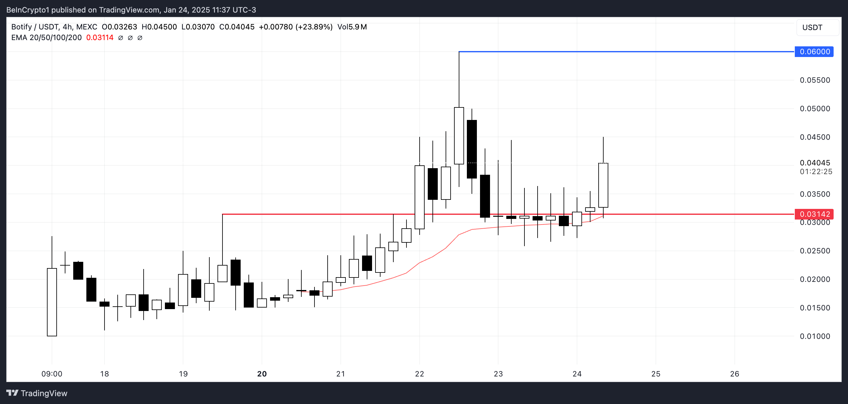Kung magpatuloy ang uptrend, maaaring lumampas ang presyo ng BOTIFY sa $0.050 at posibleng i-test ang $0.060. Pero kung bumaba ito sa $0.031 support level, maaaring mag-trigger ito ng significant correction sa short term.