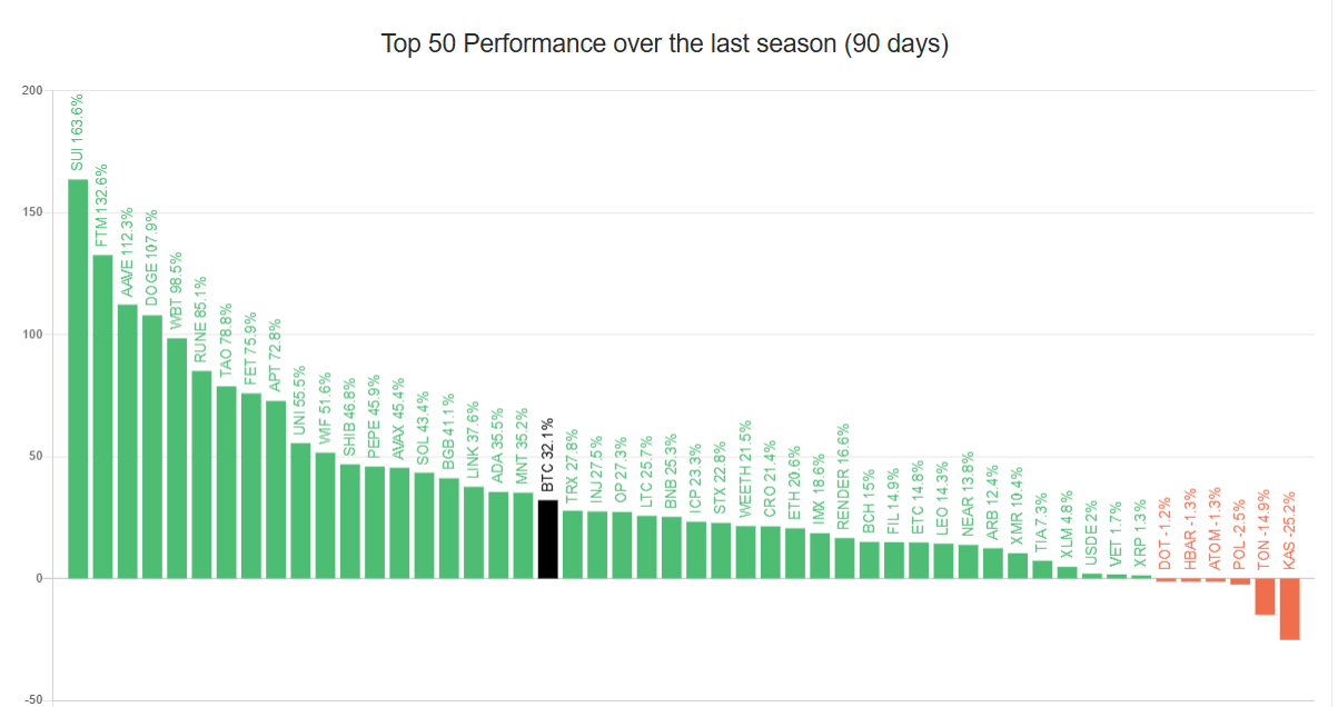 Sa ngayon, 19 lang na altcoins ang lumalampas sa gains ng Bitcoin, na nagpapakita na hindi pa talaga fully nagsisimula ang AltSeason. Kung tataas pa ang bilang na ito, magiging senyales ito ng malinaw na shift. Pero sa ngayon, malakas pa rin ang impluwensya ng Bitcoin, na nagpapaliban sa simula ng malakas na altcoin rally.