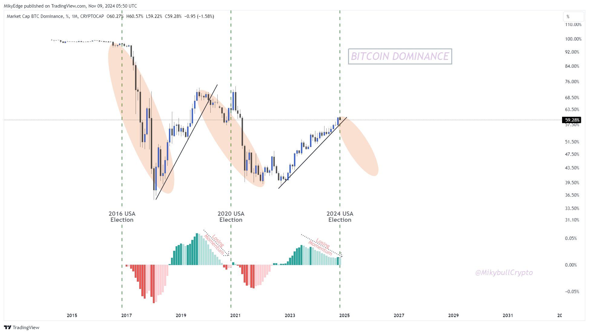 Ayon sa analyst, ang post-election atmosphere ang nagtutulak ng shift na ito, na historically, nagiging catalyst para sa mga altcoin rallies. Pwedeng magresulta ito sa isang phase kung saan mas maganda ang performance ng mga altcoins kumpara sa Bitcoin in terms of growth.