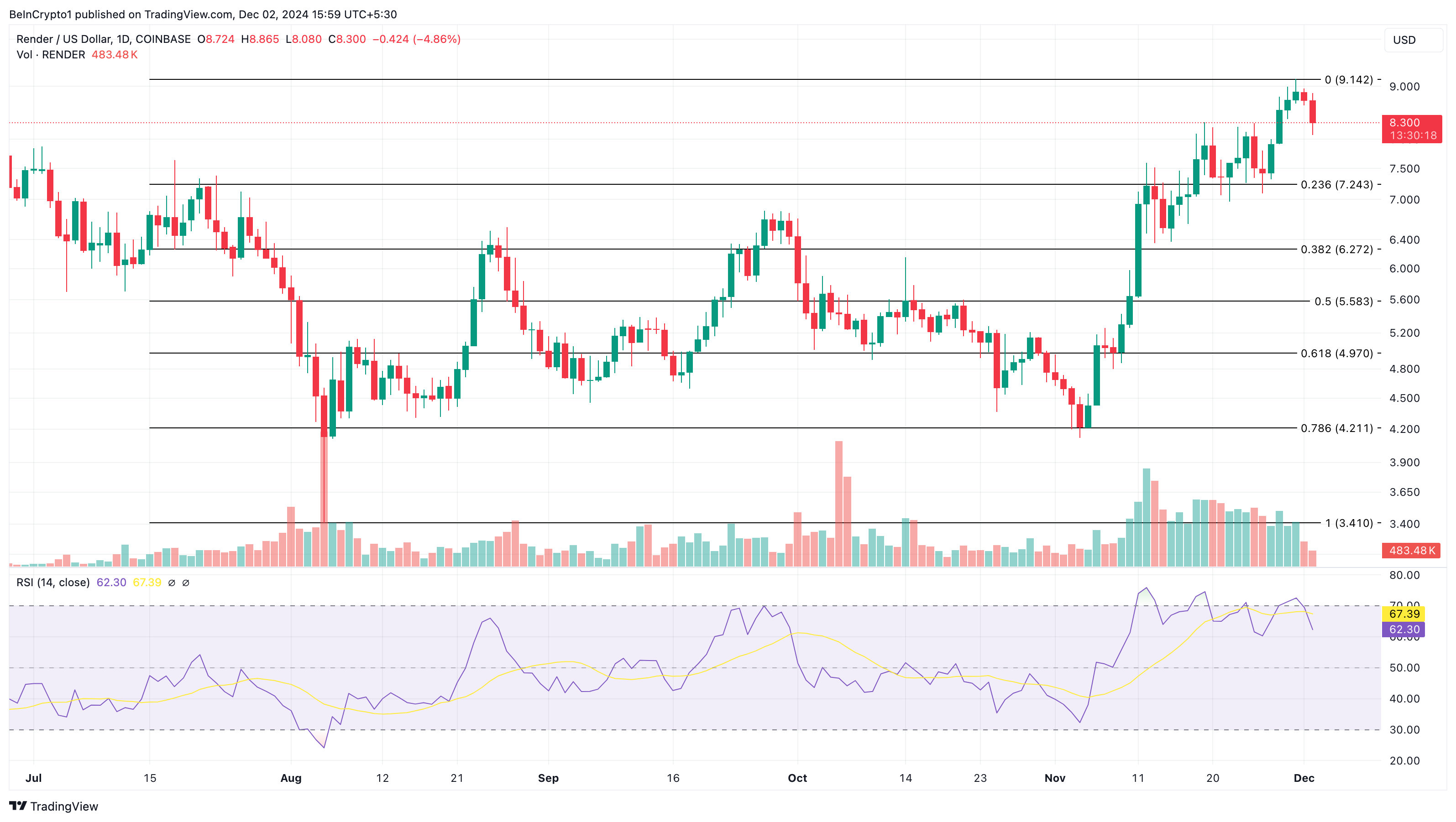 Kung ganito nga, posibleng bumaba ang presyo ng RENDER sa $7.24. Pero kung tataas ulit ang buying pressure, baka hindi ito mangyari. Kung mangyari ito, posibleng bumalik ang altcoins sa $9.14.
