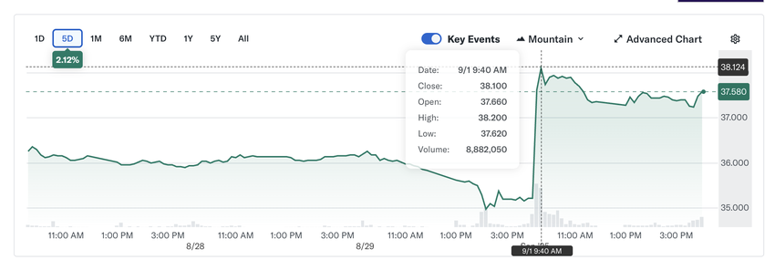 Tumaas ng 6.7% ang shares ng Bank of China na nakalista sa Hong Kong noong Lunes, na nagsara sa HKD 37.580, matapos magsa-suggest ang mga local reports na ang city unit ng bangko ay naghahanda na mag-apply para sa stablecoin issuer license. Ang hakbang na ito ay kasunod ng pag-launch ng Hong Kong ng isa sa mga unang dedicated licensing frameworks para sa fiat-referenced stablecoins noong August 1.
