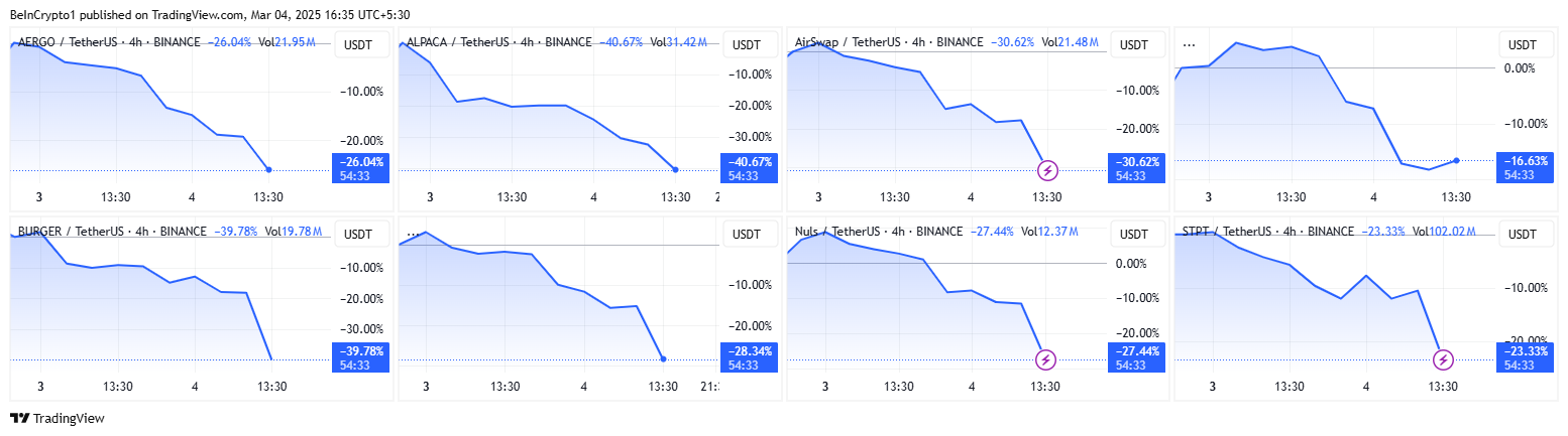 Gayunpaman, ang assurance na ito ay hindi nakapagpakalma sa mga token holders. Sa agarang resulta ng potensyal na pag-delist na anunsyo, bumagsak ang halaga ng 10 nabanggit na tokens, na nag-post ng double-digit losses habang ang mga investors ay nag-trade ng balita.