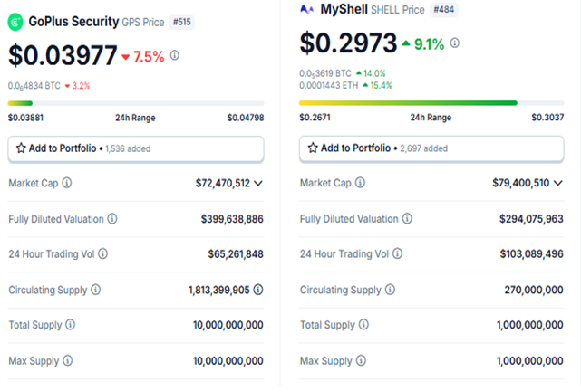 Ayon sa data ng CoinGecko, bumaba ang presyo ng GPS ng mahigit 7% mula nang magbukas ang session noong Lunes, at nagte-trade ito sa $0.03977 sa kasalukuyan. Sa kabilang banda, tumaas ang presyo ng SHELL token ng halos 10% sa parehong yugto at ibinebenta ito sa $0.2973 sa ngayon.