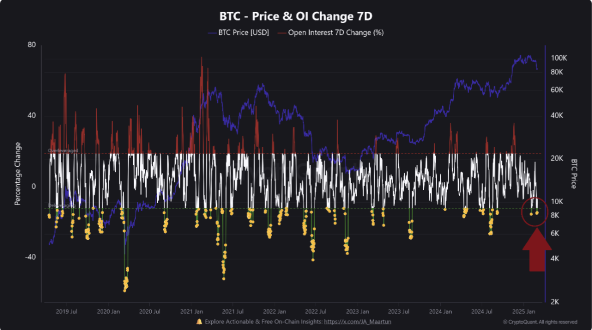 Ayon kay Banker, ang Open Interest Change (7D) ng Bitcoin ay “bumaba nang malaki, bumagsak ng -14.42% noong March 1st.”