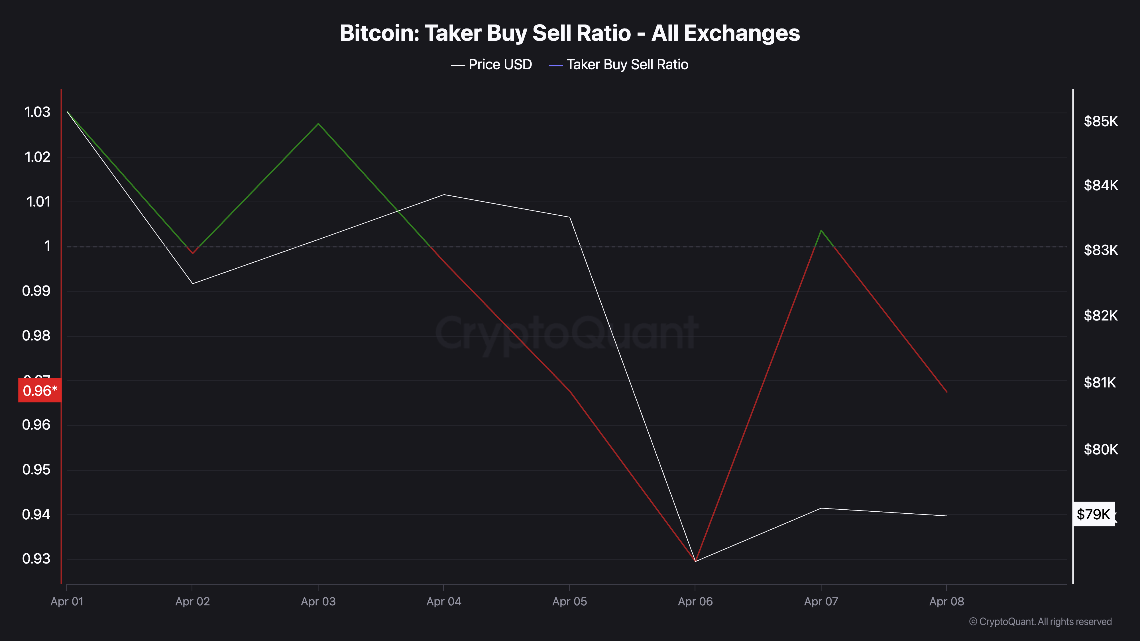 Bitcoin Taker Buy Sell Ratio. Source: CrytpoQuant