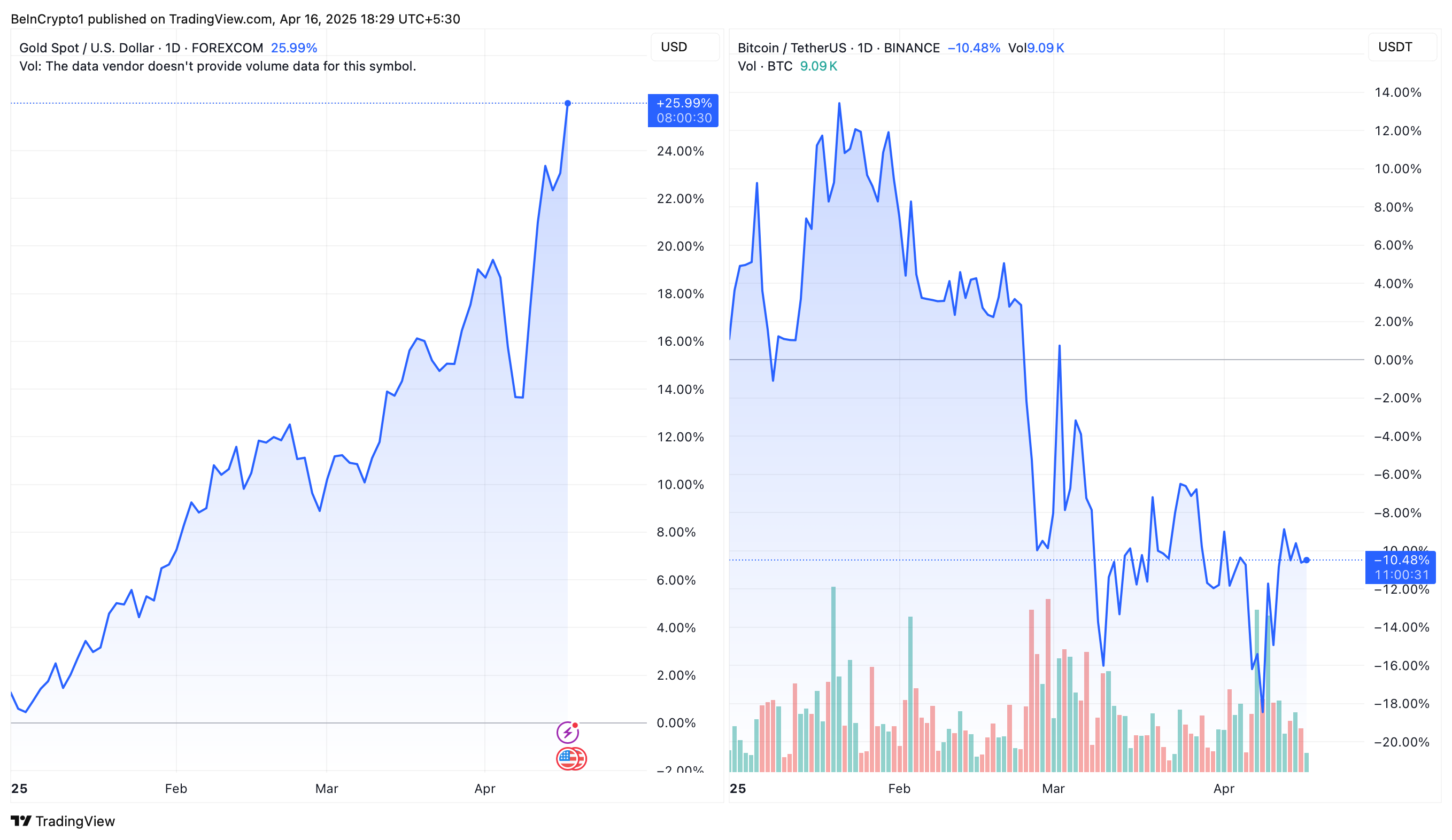 Kumuha ng kape para makita ang sinasabi ng mga analyst tungkol sa Gold na umaabot sa bagong all-time highs habang ang Bitcoin ay nahuhuli. Sa puntong ito, marami sa crypto community ang nagtataka kung ang ‘Digital Gold’ narrative ay nagsisimula nang magbago.