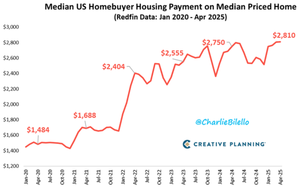 Sa ibang balita, binigyang-diin ni investor Charlie Bilello na ang buwanang mortgage payment para sa pagbili ng median-priced na bahay sa US ay tumaas ng 89% sa nakalipas na limang taon.