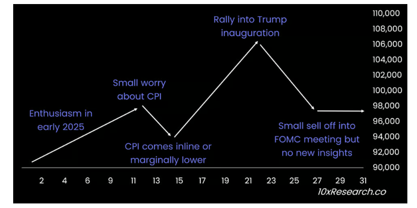 Ayon sa 10x Research, baka hindi makakita ng parehong level ng momentum ang Q1 2025 na nakita mula late January hanggang March 2024 o late September hanggang mid-December.