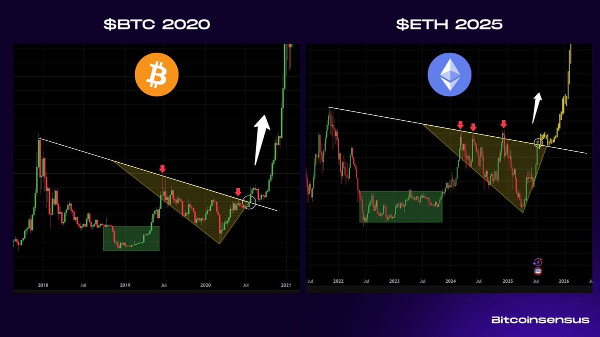 Samantala, maraming market analysts ang mas lalong nagpe-predict ng mas mataas na valuations para sa presyo ng Ethereum. Sa isang pinakabagong post sa X, sinabi ng Bitcoinsensus na ang Ethereum ay handa na para sa isang matinding pag-angat, katulad ng naranasan ng Bitcoin noong 2020.