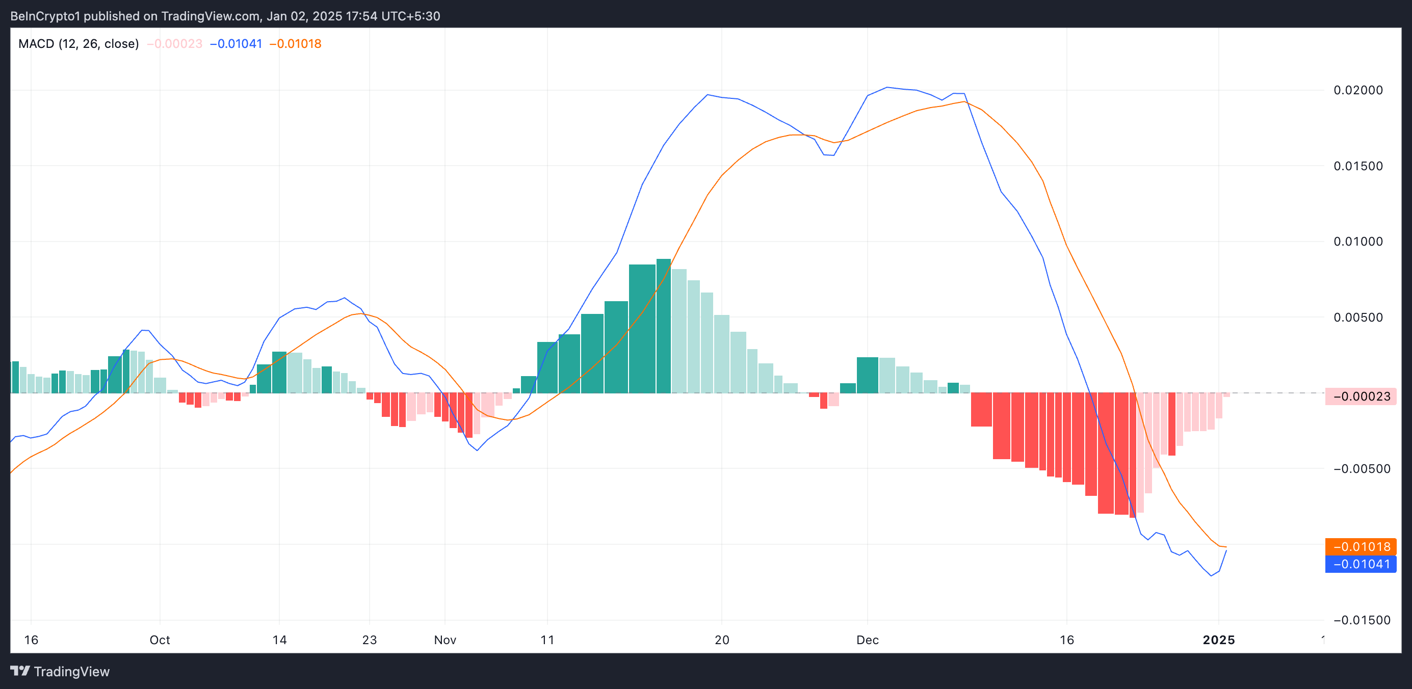 Una, mukhang handa na ang presyo ng BRETT na lampasan ang 20-day Exponential Moving Average (EMA) nito, na nagbuo ng dynamic resistance level mula noong Disyembre 12. Ang 20-day EMA ay sumusukat sa average na presyo ng isang asset sa nakaraang 20 araw. Mas binibigyang-diin nito ang mga kamakailang data ng presyo, kaya mas mabilis itong tumugon sa mga pagbabago sa presyo kumpara sa simple moving average.