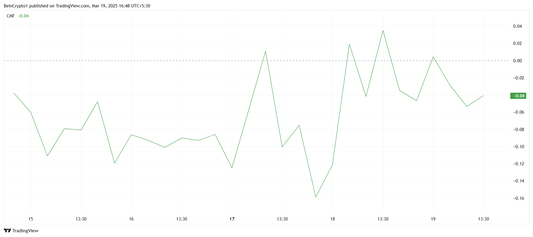 Ipinakita ng Chaikin Money Flow (CMF) indicator ang pagbaba nitong nakaraang araw, na nagpapakita ng pagtaas ng outflows habang nagbebenta ang mga investor ng kanilang holdings. Ang pagbaba sa CMF ay nagsa-suggest na ang momentum mula sa initial rally ay nagsisimula nang humina.