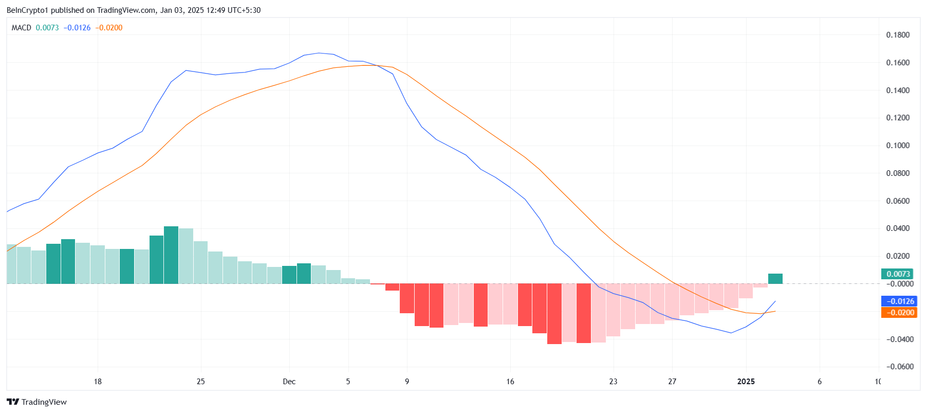 Ang overall macro momentum para sa Cardano ay gumaganda, base sa Moving Average Convergence Divergence (MACD) indicator. Kamakailan lang nagkaroon ng bullish crossover ang ADA, ang una nito sa halos isang buwan. Ang technical signal na ito ay nagsa-suggest ng pagbabago sa market sentiment, pabor sa pag-recover ng presyo ng ADA ngayong Enero.