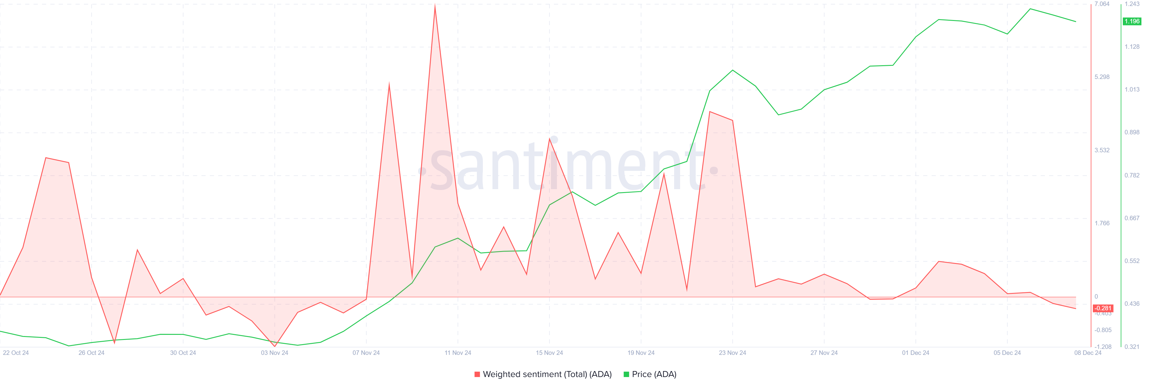 Sa unang pagkakataon sa mahigit isang buwan, naging negative ang sentiment ng mga investor sa Cardano. Ang optimism sa ADA ay humina, na nagdudulot ng pag-aalala kung kaya nitong panatilihin ang kasalukuyang presyo.