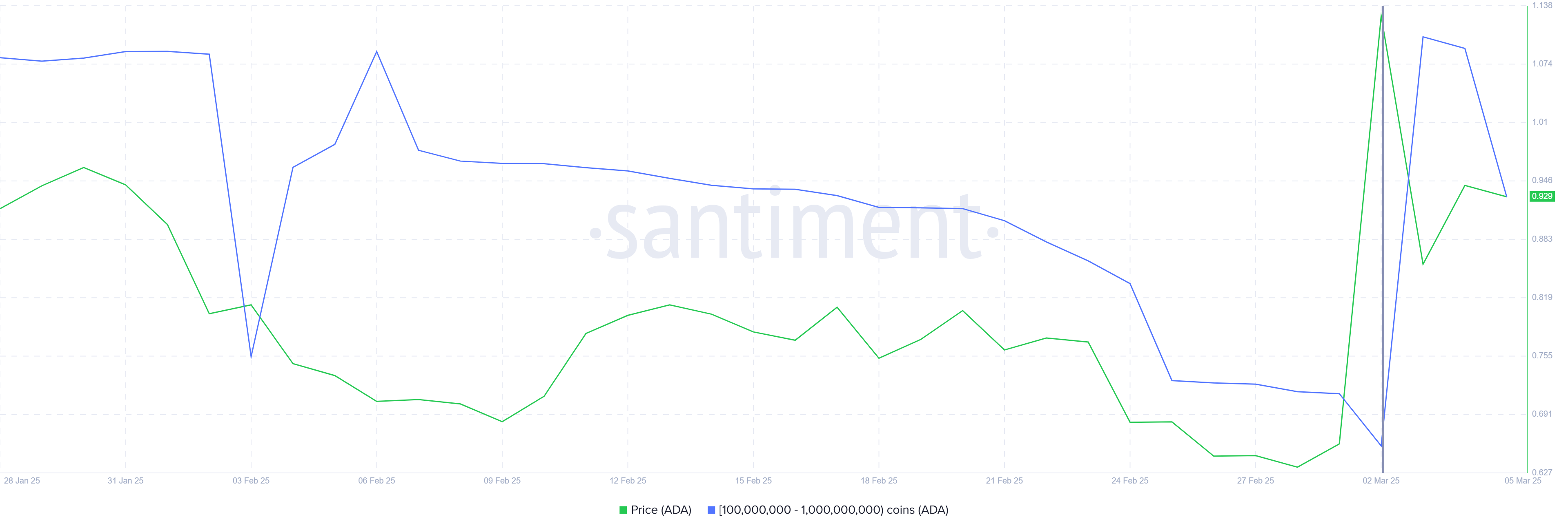 Kahit na may initial optimism matapos ang pagkakasama ng Cardano sa crypto reserve plan ni Trump, kung saan ang mga whales ay bumili ng $404 million na halaga ng ADA sa isang araw, ang mga aksyon na ito ay nagpapakita na hindi sigurado ang mga whales kung magpapatuloy ang rally. Dahil sa kanilang impluwensya sa merkado, kritikal ang kanilang mga desisyon sa paghubog ng short-term outlook para sa ADA.