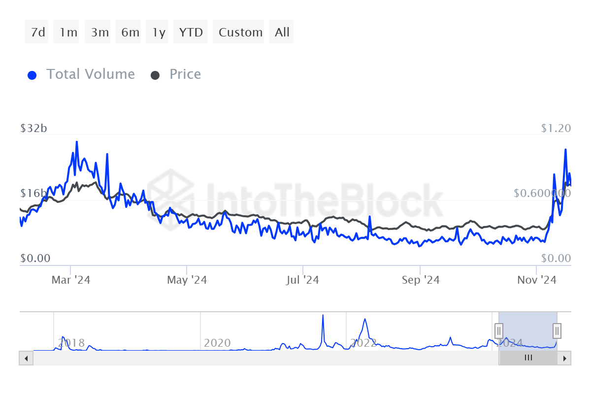 Malaking papel ang ginampanan ng whale activity sa pagpapanatili ng recent surge ng Cardano. Umabot sa walong-buwang pinakamataas ang transaction volumes na higit sa $100,000, na umabot sa $28 billion.