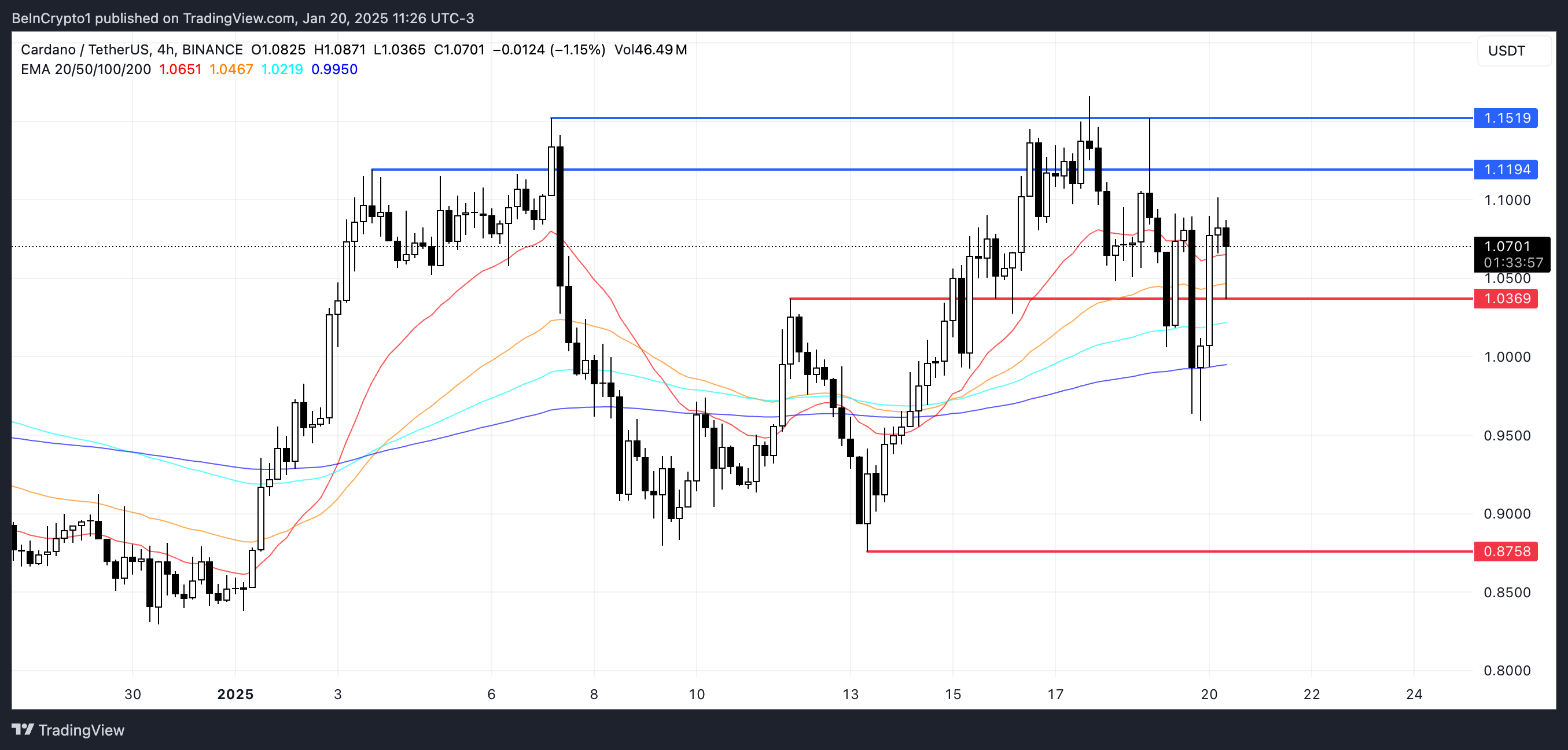 Kung muling lumakas ang kasalukuyang uptrend ng presyo ng Cardano, maaari itong lumapit at i-test ang resistance level sa $1.119. Ang pagbasag sa resistance na ito ay magpapahiwatig ng pagpapatuloy ng bullish momentum, na posibleng magbukas ng daan para sa karagdagang pataas na galaw patungo sa $1.151.