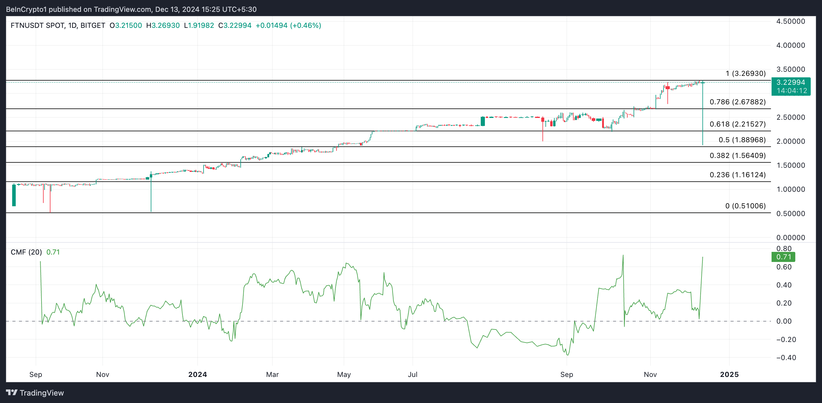 Kumpirmado ito ng pagtaas ng Chaikin Money Flow (CMF) nito. Sa oras ng pagsulat, ang CMF ng FTN ay nasa 0.71.