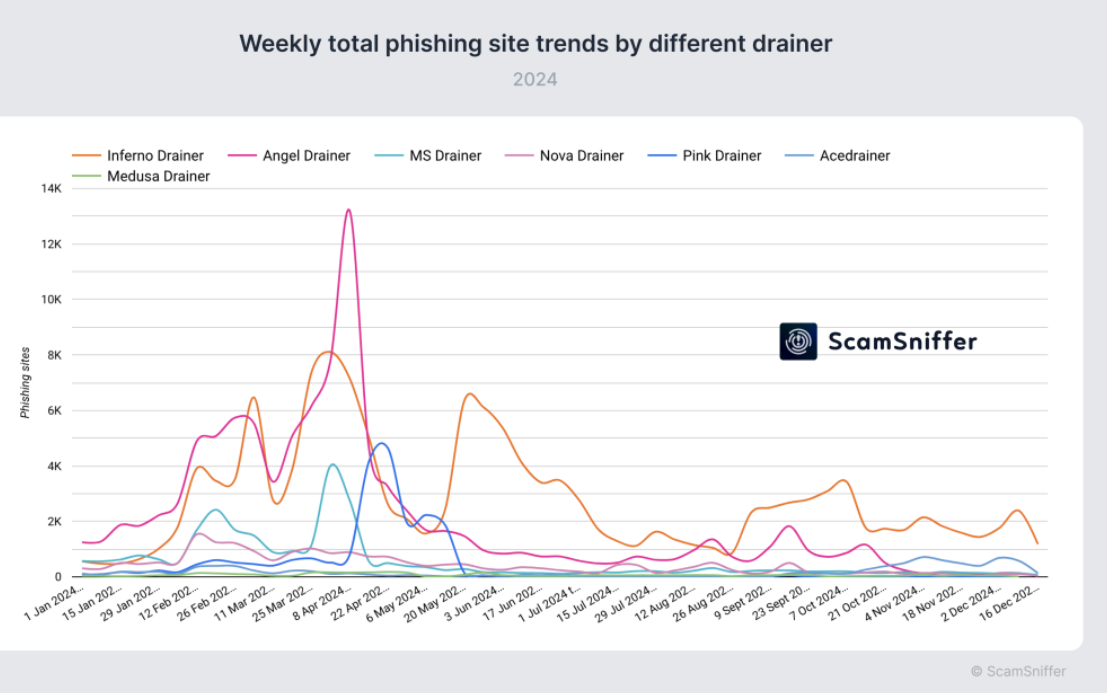 Samantala, ang landscape ng wallet drainers ay nag-evolve sa buong taon. Sa unang kalahati ng 2024, tatlong major players — Angel, Pink, at Inferno — ang nangibabaw sa eksena.