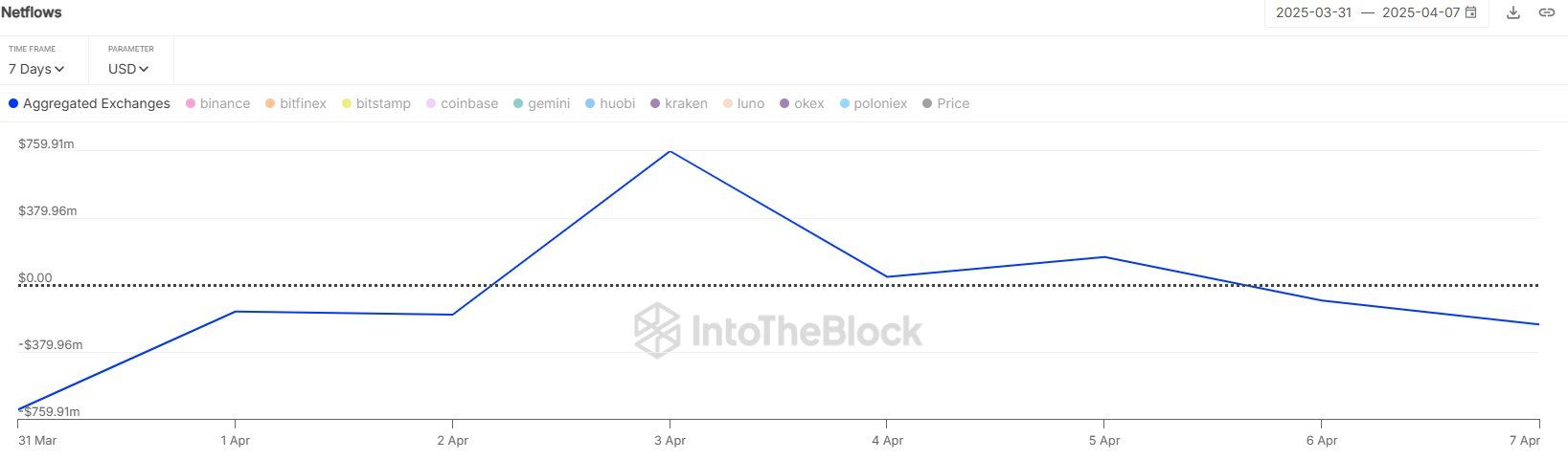 Ayon sa data mula sa IntoTheBlock, ang Bitcoin net outflows mula sa centralized exchanges ay lumampas sa $220 million kahapon—isang indikasyon ng long-term accumulation. Sa isang hiwalay na transaksyon, isang whale ang gumastos ng $6.93 million para makabili ng 4,677 ETH sa average na presyo na $1,481.