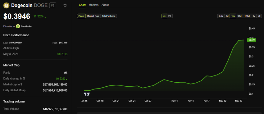 Ang acronym na D.O.G.E ay agad na nakakuha ng attention, na resonate sa fans ng sikat na meme-based cryptocurrency na Dogecoin, na famously supported ni Musk. Sa gitna ng excitement, tumaas ang Dogecoin ng mahigit 10%. Ang rally na ito ay sparked ng speculation na ang leadership ni Musk sa D.O.G.E ay maaaring signal ng future integration ng cryptocurrency sa initiative o sa kanyang mga businesses.
