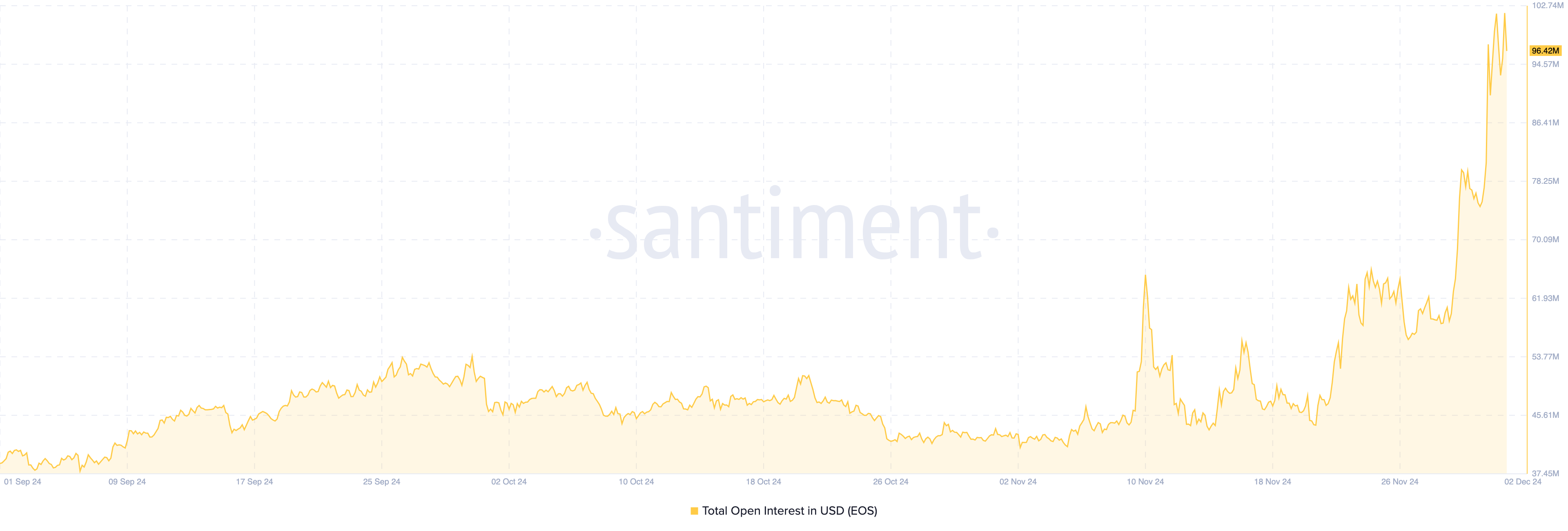 Mula sa price perspective, ang pagtaas ng OI kasabay ng pagtaas ng presyo ng EOS ay nagpapahiwatig na maaaring magpatuloy ang pag-akyat ng market value.
