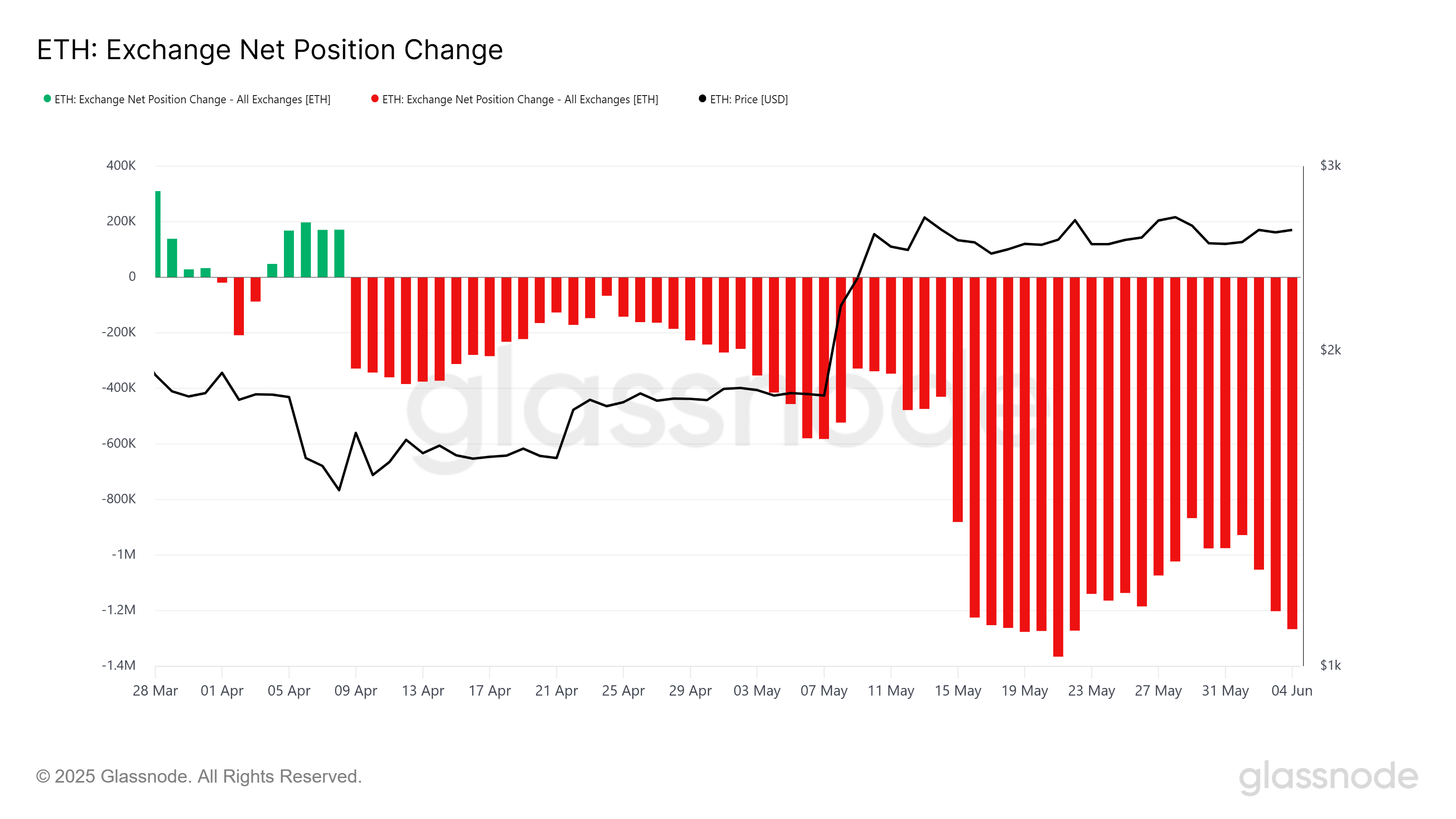 Nagbago ang sentiment ng mga investor pabor sa Ethereum, na may kapansin-pansing pagtaas sa accumulation simula noong Hunyo. Matapos ang tuloy-tuloy na pagbebenta noong katapusan ng Mayo, nakabili ang mga investor ng mahigit 300,000 ETH na nagkakahalaga ng $778 milyon mula noong simula ng Hunyo. Ang lumalaking accumulation na ito ay nagpapakita ng tumataas na kumpiyansa sa potential na presyo ng Ethereum sa hinaharap.