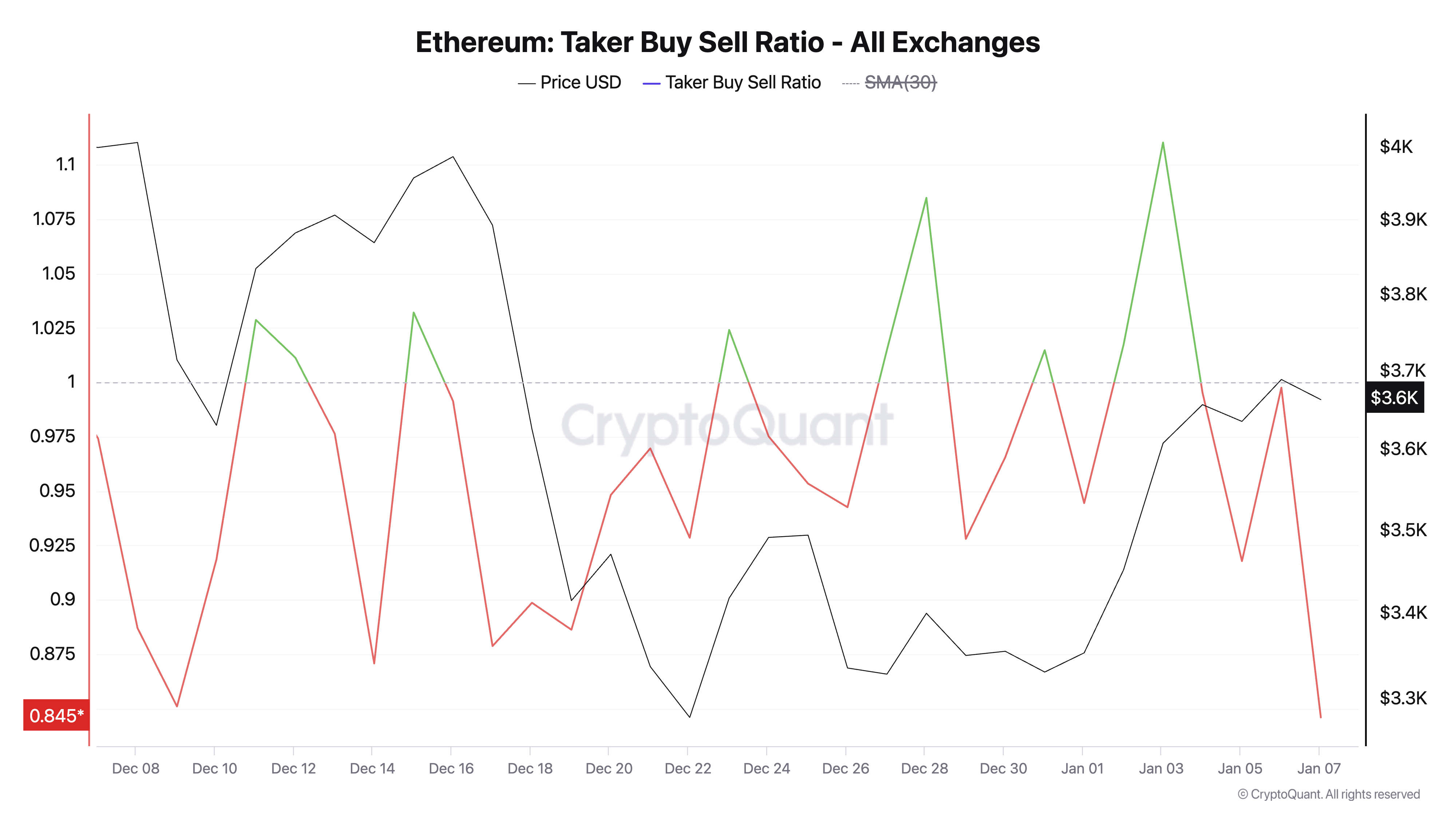 Ipinapakita ng data mula sa CryptoQuant na may pagtaas ng sell orders sa ETH futures market, kung saan ang taker buy-sell ratio nito ay nananatiling mas mababa sa isa mula pa noong Enero 4. Sa ngayon, ang ratio ay nasa 0.84.