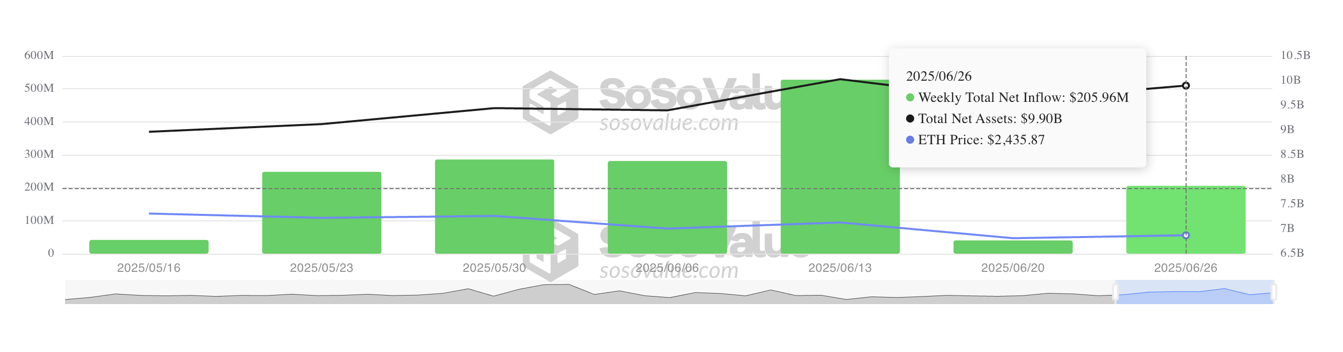 Ayon sa SosoValue, tumaas ang demand para sa ETH exchange-traded funds ngayong linggo. Sa ngayon, ang weekly inflow sa mga fund na ito ay nasa $206 million.