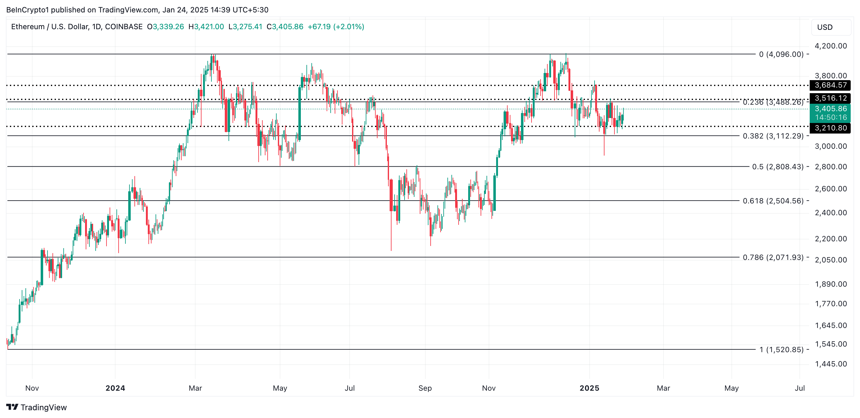 Ang Ethereum (ETH) ay nag-trade nang patagilid nang mahigit isang buwan, at ang presyo nito ay nananatiling nasa ilalim ng key resistance level na $3,500.