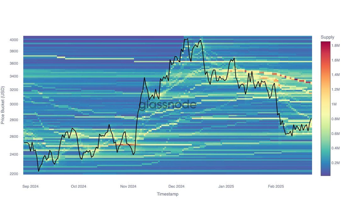 Ipinapakita ng data na may makabuluhang suporta sa $2,632, kung saan 786,660 ETH ang nakuha sa level na ito, at resistance sa $3,149, kung saan 1.22 million ETH ang naaccumulate. Ang support at resistance range na ito ay mahalaga para sa price stability ng Ethereum, dahil nagpapakita ito kung saan bumibili o nagbebenta ang malalaking grupo ng mga investor. Habang patuloy na nagte-trade ang presyo ng Ethereum sa loob ng mga zone na ito, nananatiling maingat na optimistiko ang market.