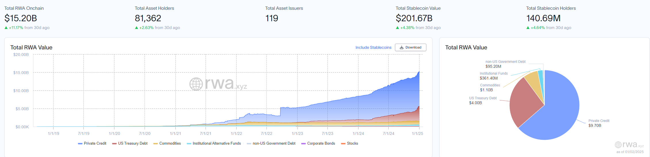 Sa kabuuan, patuloy na lumalaki ang adoption ng tokenized real-world assets (RWAs). Noong 2024, ilang major players ang nakamit ang milestones sa area na ito, na nagse-set ng stage para sa karagdagang developments sa 2025.
