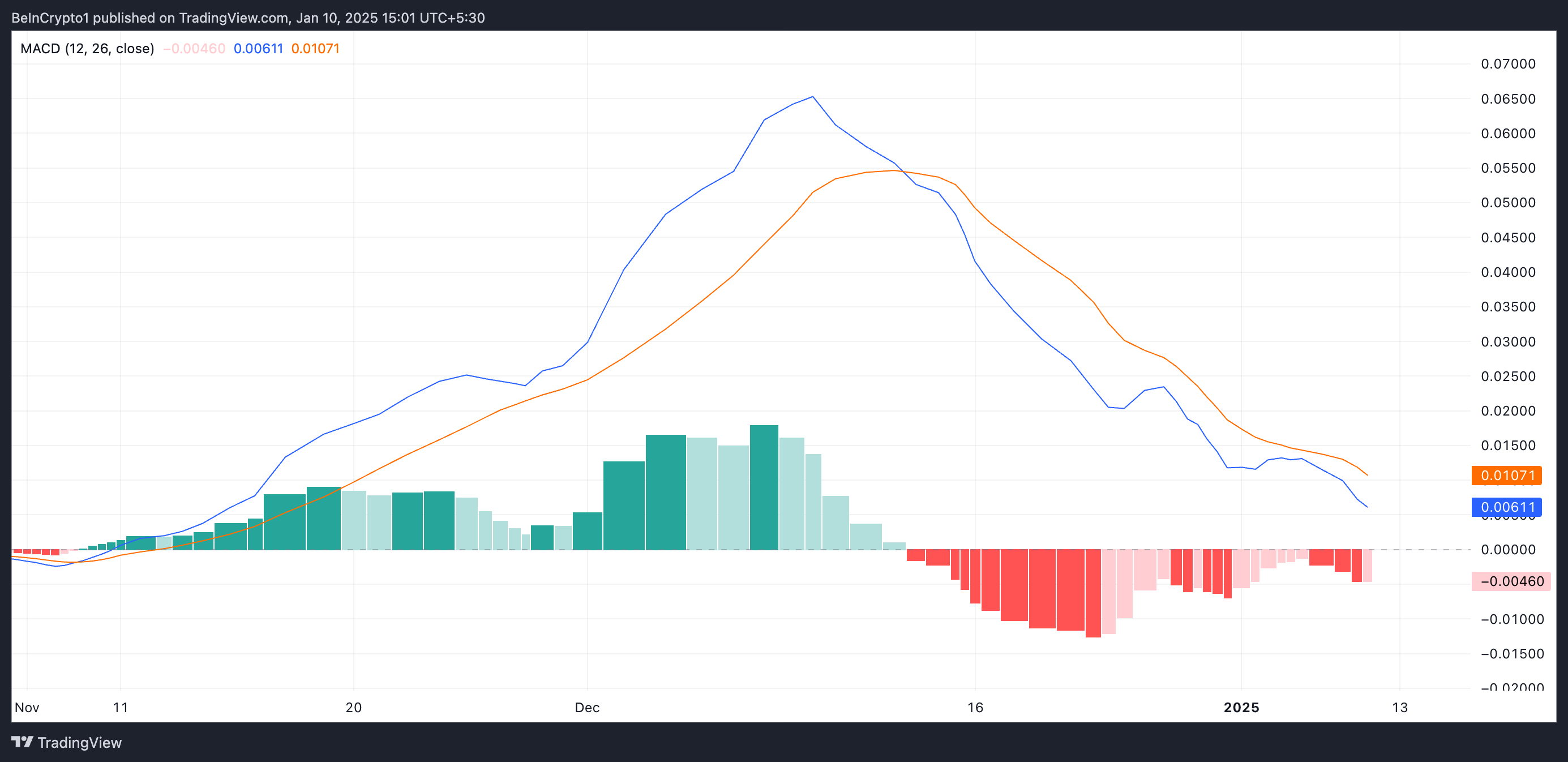 Kapag ganito ang setup ng indicator na ito, ito ay nagpapahiwatig ng bearish momentum. Ibig sabihin nito ay mas marami ang nagbebenta kaysa sa bumibili sa mga market participant, na naglalagay ng malaking downward pressure sa presyo nito.