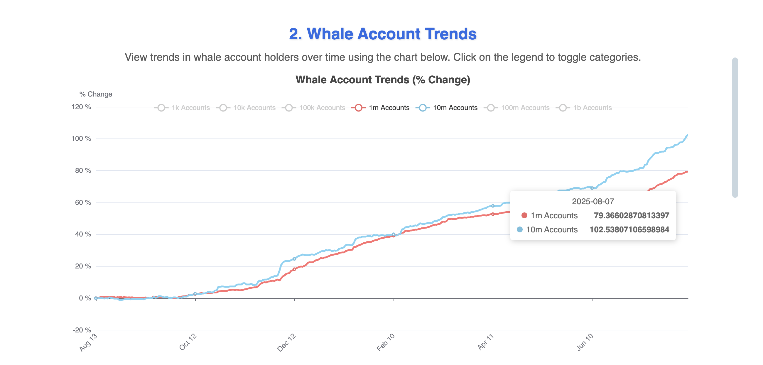 Sa nakaraang tatlong linggo, patuloy na nadagdagan ang mga whale wallets na may hawak na nasa pagitan ng 1 milyon at 10 milyon HBAR. Mula noong unang bahagi ng Agosto, tumaas ang bilang ng mga wallet na ito mula 77 at 96 hanggang 79 at 102. Ibig sabihin, nasa 62 milyong tokens ang nawala sa circulating supply, kung isasaalang-alang ang pinakamababang hawak kada wallet.