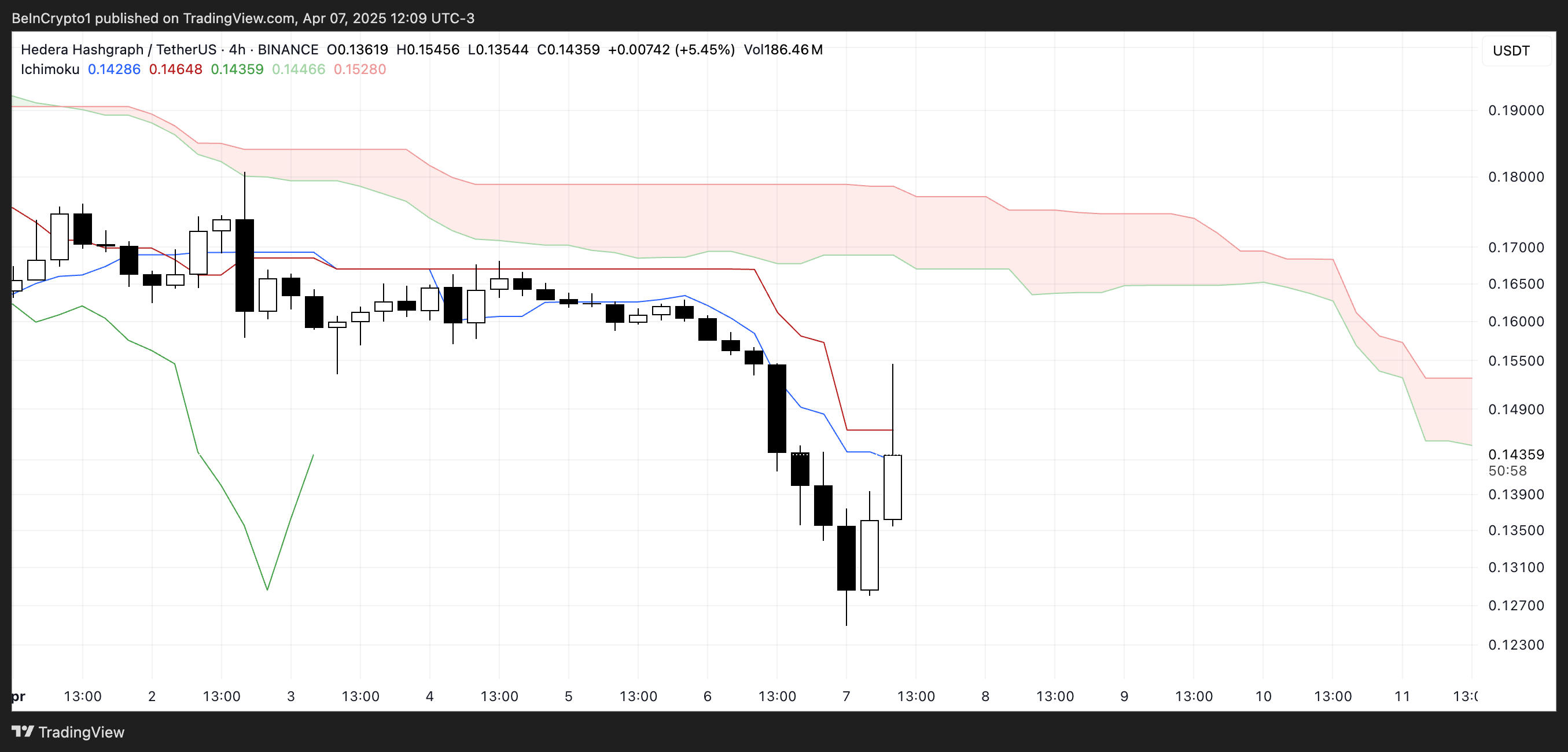 HBAR Ichimoku Cloud Nagpapakita ng Bearish na Senaryo