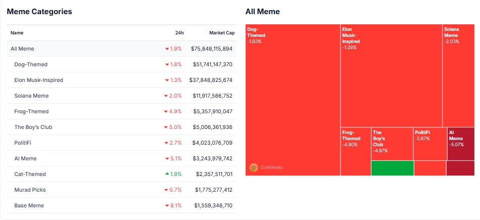 Sa gitna ng pagbabago ng focus ng mga investor, ang meme coin market cap ay bumababa, at ang atensyon ay lumilipat patungo sa mga proyektong may teknikal na halaga. Dati, ang speculative fervor sa paligid ng meme coins ay nagdudulot ng short-term rallies. Ngayon, ang kakulangan nila ng fundamental innovation ay nagresulta sa pagbaba ng kumpiyansa ng mga investor.