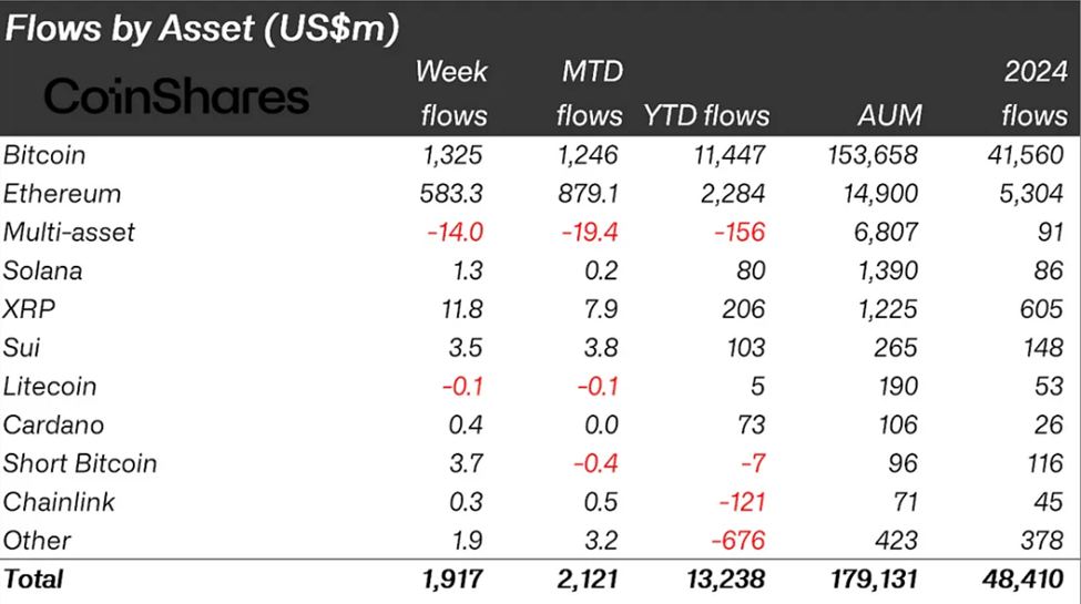 “Tinutuligsa ng digital assets ang geopolitical tensions sa pamamagitan ng karagdagang inflows na $1.9 bilyon,” sulat ni James Butterfill, head of research sa CoinShares.