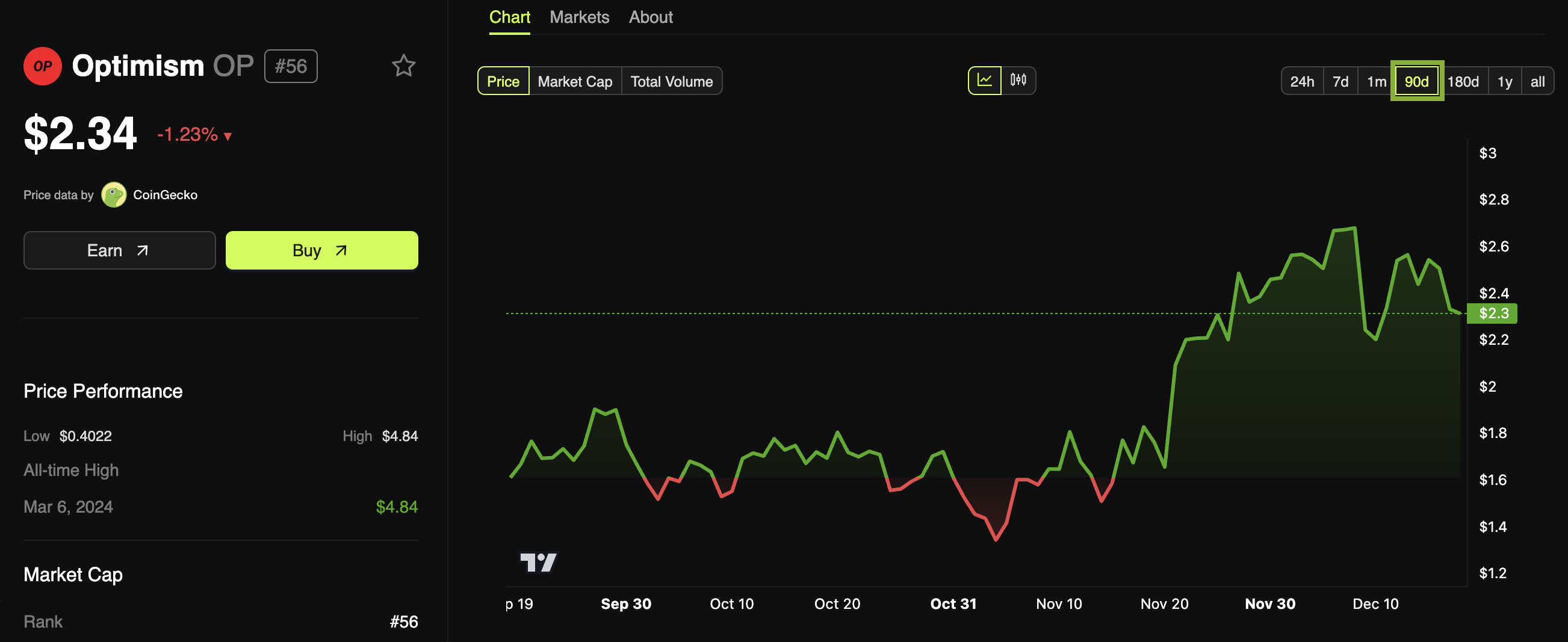 Samantala, nakaranas din ng ilang challenges ang Optimism bago ang mainnet launch. Noong Oktubre, ang scaling solution ecosystem ay nasa pressure, at ang OP token ng chain ay nakaranas ng price shocks. Ang ongoing na crypto bull market ay hindi gaanong nakatulong sa value ng token, at ito ay nagpakita ng hindi gaanong magandang performance sa buong taon.