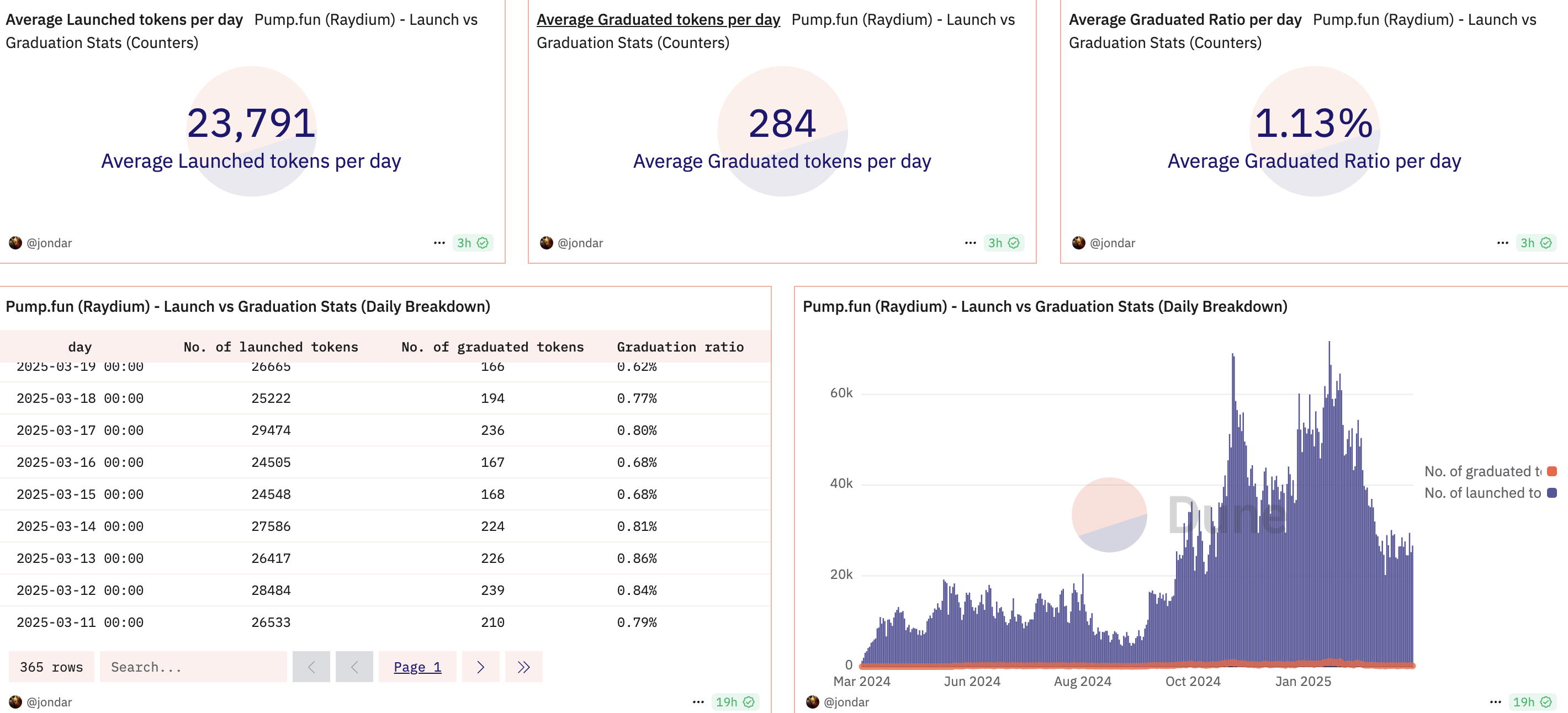 Ayon sa Dune Analytics, walong tokens lang ang nagawa ng SunPump ngayon, habang 21 naman ang sa Dgen.fun. Ipinapakita ng mga numerong ito na hindi pa kayang makipagsabayan ng mga platform na ito sa scale ng Raydium LaunchLab o Pump.fun.