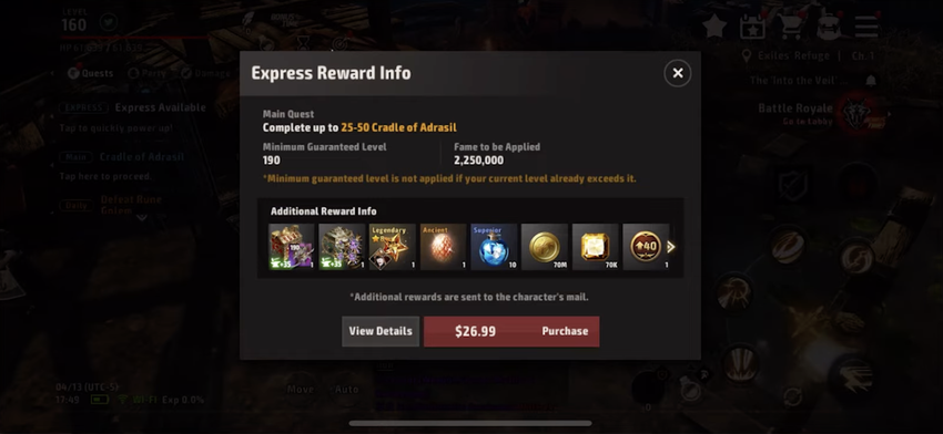 Dapat malaman ng mga manlalaro na ang mga express pass na ito ay magagamit lamang sa mga bagong manlalaro at maaaring maisaaktibo lamang sa loob ng unang pitong araw pagkatapos ng unang pag-log in. Pagkatapos ng unang linggo ng paglalaro ng laro ang pagpipilian ay mawawala, ang mga manlalaro ay hindi maaaring bumili at i-activate ang mga express pass na ito.