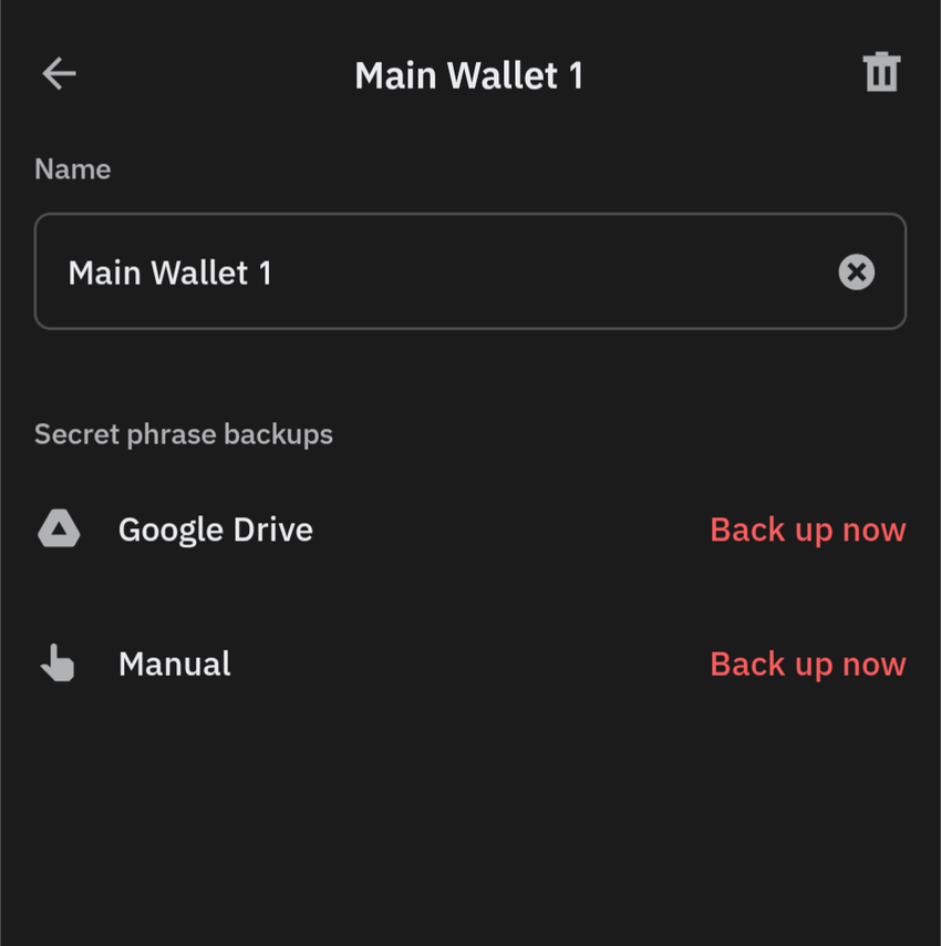 Kaya, mayroong dalawang paraan na maaari mong i-back up at i-secure ang iyong bagong nilikha na wallet. Karaniwan itong lumilitaw bilang “Main Wallet” o “Main Wallet 1”. Maaari mo itong mahanap sa tuktok ng interface ng seksyon na “Home” ng app.