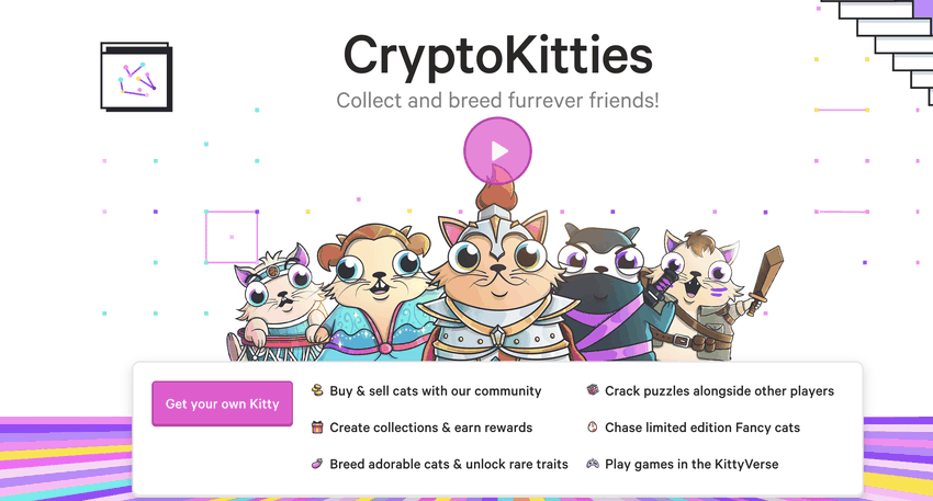 Ang CryptoKitties ay isang laro na nakabatay sa blockchain kung saan ang mga manlalaro ay nangongolekta, nakikipagkalakalan, at nag-aanak ng mga virtual na pusa, bawat isa ay kinakatawan bilang isang non-fungible token (NFT) sa Ethereum blockchain.