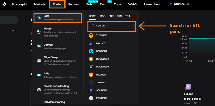 Step 5: Hanapin ang Ethereum Classic (ETC) sa Bitget