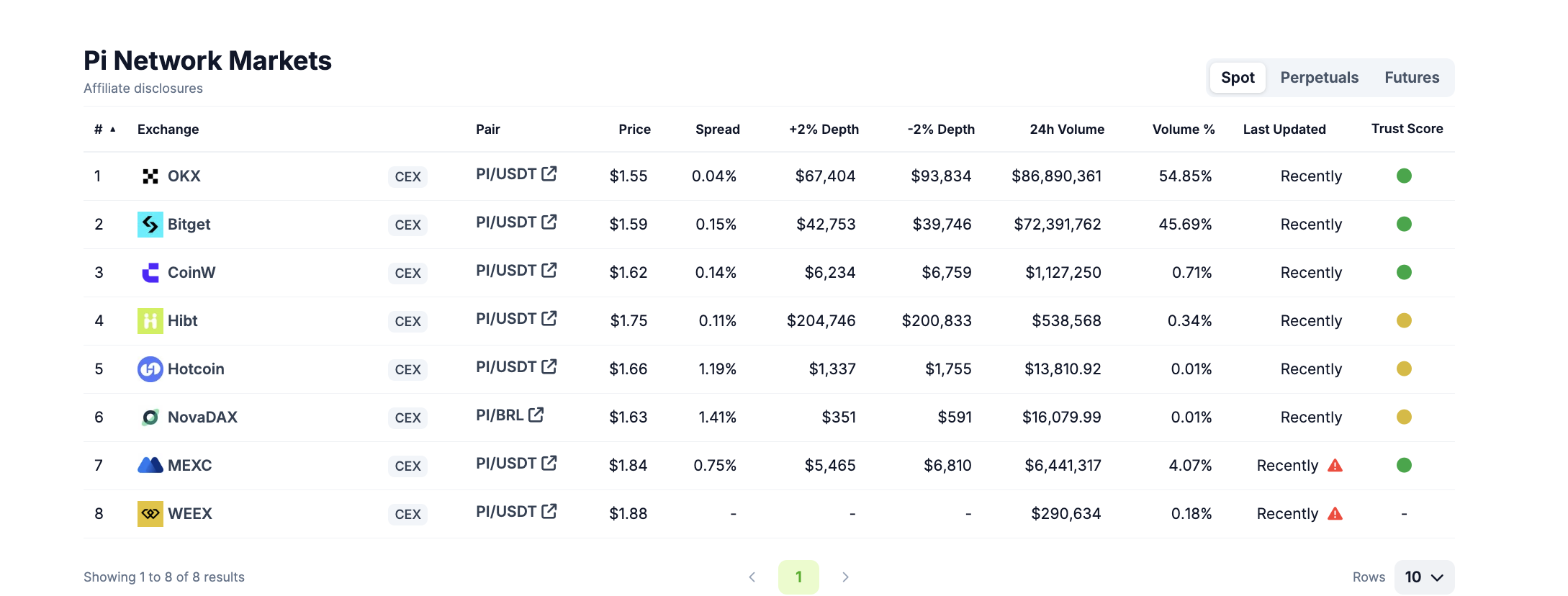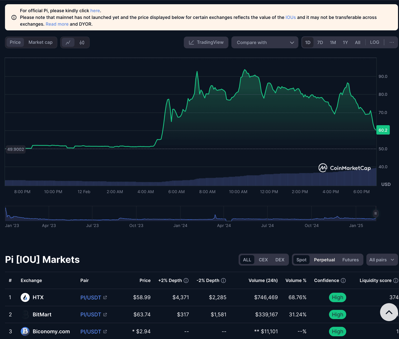 Maraming crypto exchange ang naglista ng Pi Coin (PI) noong Pebrero 20, 2025.