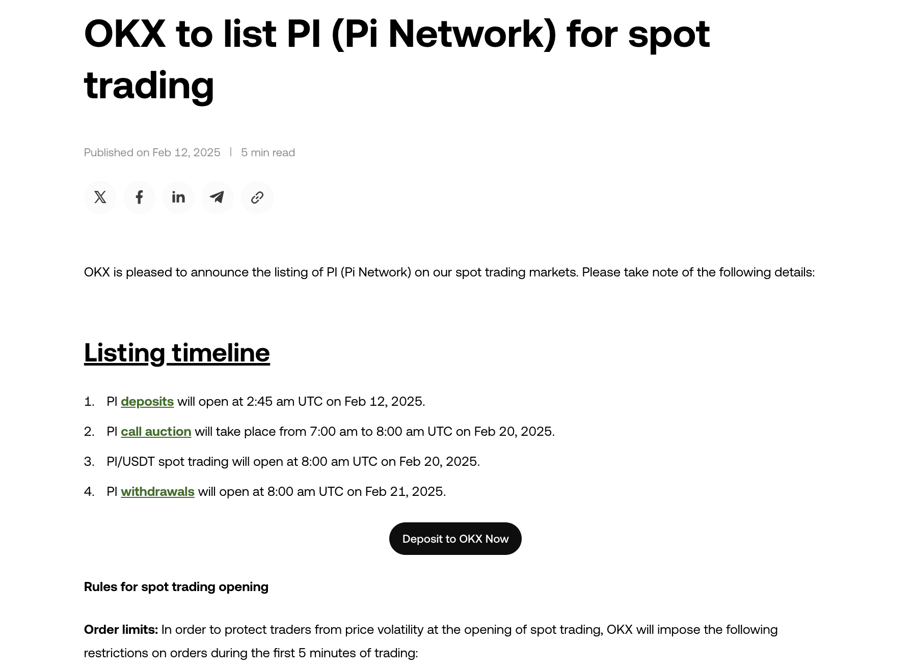 - Pebrero 20, 2025 (8:00 AM UTC): Nagsimula ang Spot Trading.