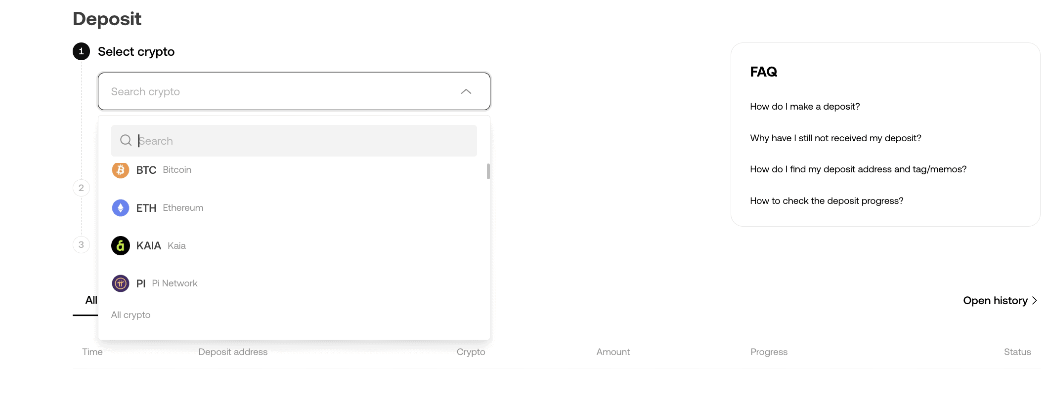 Ngayon, lumipat sa OKX. Buksan ang exchange, pumunta sa deposit section, at hanapin ang Pi Coin. Kopyahin ang iyong unique Pi deposit address (nagsisimula ito sa “M”) at i-paste ito sa iyong Pi Wallet.