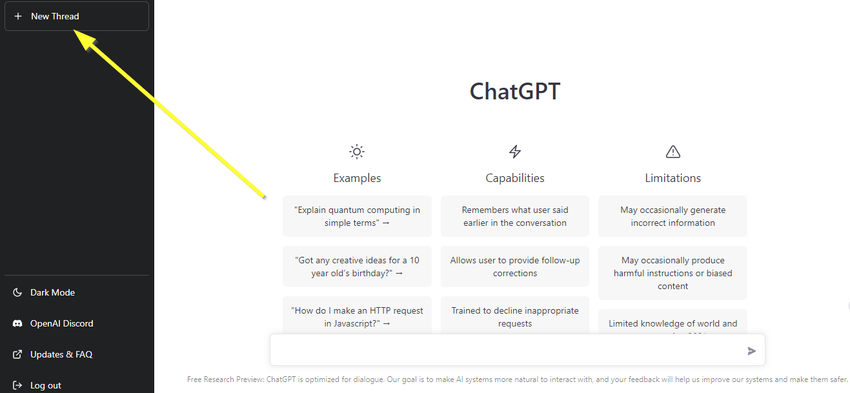 Pwede mo ring i-click ang “New Thread” button sa kaliwang sidebar para i-reset ang kasalukuyang usapan at magsimula ng bago.